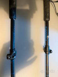 Bastoncini acquistati un anno fa usati praticamente per una vacanza di trekking in Norvegia della durata di 10 giorni. Esteticamente non più belli ma ancora perfettamente funzionali. Materiale carbonio, pieghevoli
