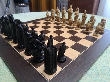 Vendo nuova, scacchiera e scacchi della famosa battaglia di Hastings, mai esposta, comprata a Londra nel 2009, introvabile, pezzi rari, tenuta sempre in scatola super protetta, compresa di foglio descrittivo della battaglia in inglese e traduzione in italiano. Un set di scacchi che rappresentano i due eserciti avversari nella battaglia piu famosa combattuta sul suolo inglese. Harold, il re inglese, guida le sue forze sassoni contro l'invasore Guglielmo, duca di Normandia. Gli straordinari dettagli creati dagli scultori sono riccamente esposti in questo storico set di scacchi, finitura marrone e avorio. Per altre foto e info, contattatemi in privato. Spedisco in tuta Italia, costo della consegna a parte, accetto tutti i tipi di pagamento, grazie!