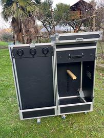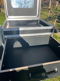 cassone equitazione marca equiASA, cassone nero tenuto molto bene ma presenta dei graffi soprattutto all'esterno dovuti alla vicinanza con altri cassoni durante il trasporto in gara, il cassone presenta 3 porta testiera, un cassetto, un porta sella estraibile con la possibilità di attaccarlo all'esterno e uno scompartimento superiore con uno specchio che andrebbe cambiato, le ruote sono state cambiate da poco e quindi in ottime condizioni. Se comprato nelle vicinanze posso consegnarlo io personalmente