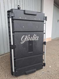 Leggero pratico ed ermetico, può stare nel baule della macchina, facilmente trasportabile grazie a due ruote e maniglione estraibile.