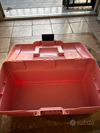bauletto/grooming box fouganza rosa, il bauletto presenta qualche segno di usura (qualche graffietto quasi impercettibile), usato davvero poco, in aggiunta due spazzole misura pony (quindi sono spazzole piccole, vedi foto) le spazzole sono una striglia e una spazzola a setole morbide