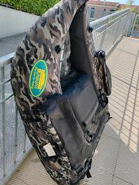 Vendo Belly Boat ottimo per la pesca del luccio e del boccalone. equipaggiato con valvole di sicurezza BS "Boston Style" rivestito con tessuto Oxford e rinforzi Oxford per garantire la massima sicurezza, il belly boat è fornito di sgancio rapido di sicurezza. Camere d'aria in PVC da 0,48mm in elementi separati per garantire la massima sicurezza. La speciale forma a "V" idrodinamica è il massimo per la stabilità, mobilità e velocità. Frontale aperto per facilitare l'alaggio ed il varo, per entrare ed uscire dall'acqua ancora più facilmente. Portacanne frontale e laterale con pratico velcro. Schienale ultra comodo in schiuma di poliuretano. Tasche laterali impermeabili. Misure (Gonfiato) Cm 150x112x34 Peso: 3,6 Kg Inclusa Borsa per il trasporto e pompa per il gonfiaggio. Portata 140Kg