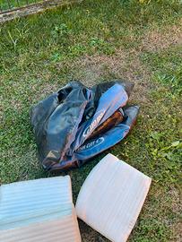 È incluso anche un kit di riparazione delle camere d'aria, una valvola extra in caso di necessità, le cinghie per il trasporto, se serve posso aggiungere gratuitamente un sacco di plastica da materassi per trasportarlo senza sporcare la macchina.