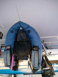 .È compreso anche pompa per il gonfiaggio, pinne che si adattano al piede da mettere sopra scarpe o stivali, porta canne in alluminio.