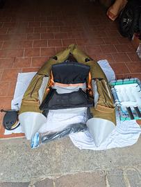 Belly Boat Fish Cat 4 verde usato poco per mancanza di tempo al lago di Vico e Bolsena (VT) mai acqua salata, grazie alle sue doppie camere d'aria in entrambi i lati è INAFFONDABILE E IDISTRUTTIBILE, tenuto benissimo e tenuto sempre semi-gonfio per salvaguardare le camere d'aria, con pompa di gonfiaggio, tavolino con retina per misurazione pesci, bretelle per il trasporto a spalla, portacanne autocostruito, sacche laterali molto grandi e capienti e fondo in pvc per una scorrevolezza in acqua, per chi volesse è visibile a Caprarola (VT)zona lago di Vico (VT)