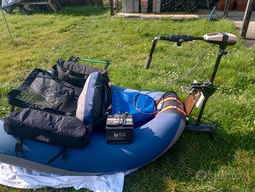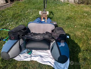 In omaggio portacanne autocostruito, borsa per batteria impermeabile(oltre alla batteria ci aggiungevo contenitori per esche, sistema salpaancora con ancorotto posteriore che usavo in caso di vento forte.