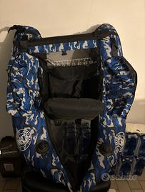 Belly boat completo di sacca per portarlo,pompetta a pedale,due porta canne laterali,due tasche per le esche e misuratore