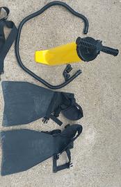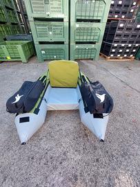 vendo belly boat usato 2 volte tenuto benissimo,leggerissimo 6 kg, portata 145 kg,fondo resistente in pvc,2 ampie tasche porta attrezzatura, con pinne e pompa gonfiaggio.