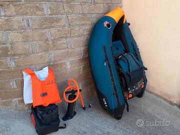 Usato per 11 ore in 3 uscite, come nuovo, compreso pompa, 3 sacche impermiabili, pinne regolabili e giubotto. Ritiro da concordare