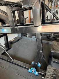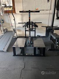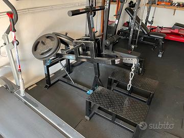 vendo questo robustissimo belt squat perfetto, utilizzo di un anno, vendo perchè torno in palestra e vendo tutto...altri annunci nel mio account... non spedisco solo ritiro di persona, belt squat adatto a moltissimi esercizi, principale accosciata tipo squat senza sollecitare schiena, ma anche ottimo per stacchi gambe teste, stacchi sumo, scrollate trapezi, bicipiti cavo basso, tricipiti cavo alto, rematore bilancere o rematore singolo mettendo una maniglia in basso ecc .... misure contenute 1 mt larghezza per 130 cm di profondità , materiali molto robusti e spessi si può caricare su un sacco di pesi e perni su cuscinetti, perno caricamento dischi 28 mm per dischi decathon o superiori...perni fatti fare lunghi per poter caricare più dischi per altre info contattatemi al 3404800245