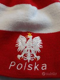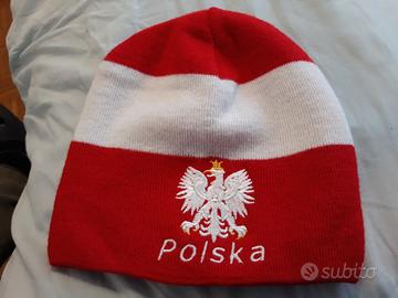 Berretto invernale della Polonia, marca Nike, tg unica da adulto. Lo stemma nazionale e la scritta davanti sono ricamati in rilievo sul tessuto. LA TERMOAPPLICAZIONE IN PLASTICA DEL LOGO NIKE SUL RETRO È LIEVEMENTE USURATA (VEDASI DETTAGLI FOTO). Articolo poco usato è in buone condizioni generali e ben conservato.