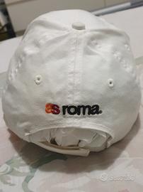 Berretto con visiera della AS ROMA prodotto ufficiale della ROMA, colore bianco con logo squadra ROMA, sulla visiera due linee con i colori della squadra. nel retro scritta cucita AS ROMA. Tg unica. la chiusura si regola tramite velcro. Unisex.