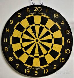 Bersaglio DARTS della Milbro . Made in Scotland anni 60. Usato principalmente dal verso con la ghiera in ferro . Pochissimo usato dal lato senza ghiera. Ovviamente la ghiera si può trasferire sul lato meno usato. A corredo nn.3 freccette blu leggere e 3 freccette bianche pesanti risalenti alla stessa epoca. No scatole. Spedizione con circuito Tuttosubito.