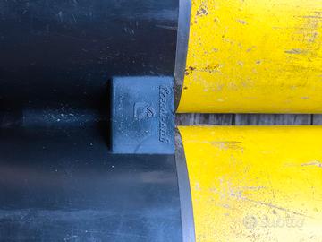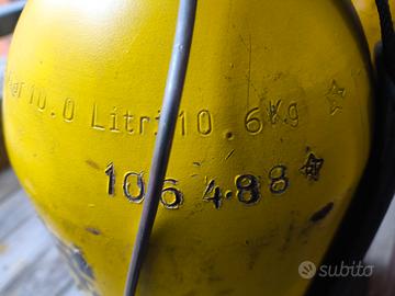 Coppia di bombole subacquee Cressi-Sub da 10 litri ciascuna (bibo 10+10), in acciaio, colore giallo/nero. Complete di: manifold di collegamento con rubinetteria doppia, schienalino/imbragatura con cinghie e cintura, fondelli in gomma. Capacità: 10 L cad. — Peso: 10,4 kg cad. — Pressione: ARIA 200/300 bar. Condizioni: usate, con graffi e segni d'uso sull'esterno, struttura metallica solida e integra. Rubinetteria presente e completa. ⚠️ Collaudo idrostatico scaduto — da revisionare prima dell'utilizzo. Parole chiave: bibo sub Cressi, bombole doppie immersione, schienalino sub, 10 litri scuba, attrezzatura subacquea usata, bombole acciaio diving, biblock, kit immersione, sub diving equipment Italy.