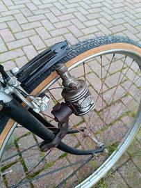 bicicletta BIANCHI modello leggero e sportivo. sella in pelle con borchie in rame. riverniciata nero in carrozzeria.