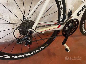 Cervelo come da foto allegate. Taglia M/S cambio Shimano 105 guarnitura 50/34 pignoni 11/32. Usata poco. Tubo orizzontale 51. Tubo sella - movimento centrale 49. Preferisco consegna a mano.