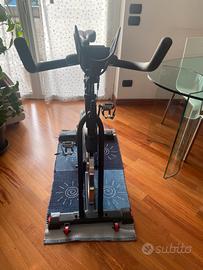 Manubrio ergonomico con più posizioni di presa, pedali dual SPD compatibili con scarpe da ginnastica e da cuclismo, resistenza regolabile. Portabirraccia. Sistema a cinghia silenzioso. Supporto integrato per tablet e smartphone.