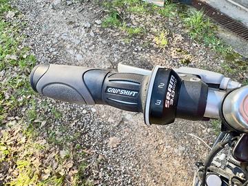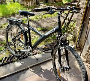 City bike con telaio in alluminio e sella in gel confortevole. Adatta anche a strade di campagna. Vendo con seggiolino posteriore, modular system. Facilissimo montare e smontare. Usata poco e tenuta benissimo. Unico difetto il fanalino davanti va sostituito. Prezzo originale con tutti gli accessori oltre i 500 euro.