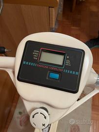 Vendo bicicletta da camera cyclette con regolazione della sella e dello sforzo percepito. Dotata di display a cristalli liquidi che informa sullo sforzo in corso, di manopole con freni per esercitare anche le mani.