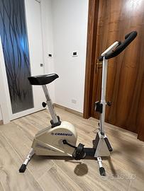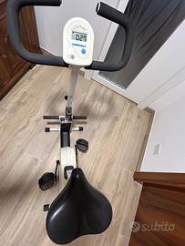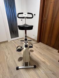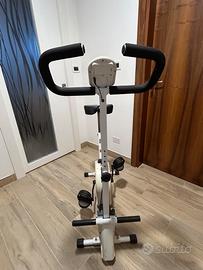 Bicicletta da camera funzionante con regolazione intensità e schermo con indicazione dei km percorsi e delle calorie consumate. Regolabile in altezza sella e manubrio. Il manubrio è oscillante per fare esercizi con le braccia. Ritiro zona Gorizia.