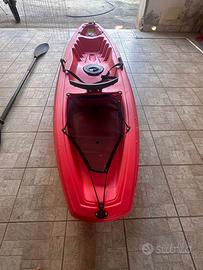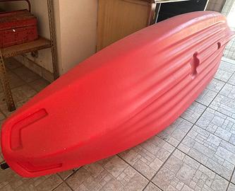 Vendo Big Mama Kayak monoposto colore rosso di lunghezza 254 cm, larghezza 75 cm e altezza 32 cm munito di gavone centrale utile a contenere oggetti personali (cellulare, portafogli ecc). Usato solo una volta é pertanto nuovo. RITIRO A MANO.