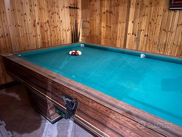 Bellissimo biliardo a boccette con sponde, illuminazione e tappeto riscaldato. Compreso di bocce per gioco all'americana + segnapunti in stecca + stecche. Smontaggio e ritiro a carico dell'acquirente