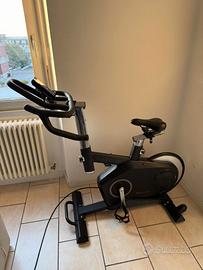 Vendo bike da spinning professionale in ottime condizioni, molto stabile e silenziosa, perfetta per allenarsi a casa come in palestra. Volano da 24 kg bilanciato che garantisce una pedalata fluida e realistica. Trasmissione a cinghia con scatto libero e resistenza magnetica elettronica regolabile dalla console. Caratteristiche principali: Volano 24 kg Trasmissione a cinghia con scatto libero silenziosa Resistenza magnetica elettronica Display LCD retroilluminato 12 programmi + 4 programmi cardio (HRC) Modalità allenamento a Watt (fino a 500 W) Bluetooth per app di allenamento Supporto smartphone/tablet Pedali SPD Sella e manubrio regolabili Peso massimo utente 150 kg Compatibile con app di allenamento come Kinomap e iConsole+. Struttura molto robusta (58 kg) con ruote per spostarla facilmente. Ideale per allenamento cardio, dimagrimento o preparazione ciclistica. Prezzo: €650,00 Ritiro a mano. Contattami per informazioni.