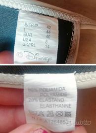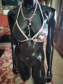 brand DISNEY con bella stampa di Mickey Mouse di color rosso, oro,nero e beige sulla coppa sinistra .Abbinabile con un qualsiasi slip nero che avrete facilmente in armadio Sull'etichetta interna della composizione, ,oltre alla scritta Disney ,e' presente la taglia italiana 44, taglia europea 40: ideale per ragazze con taglia italiana.Reggiseno della misura seconda/terza .Ottime condizioni .Possibile consegna a mano ad Arcore,Monza,Sesto e Milano