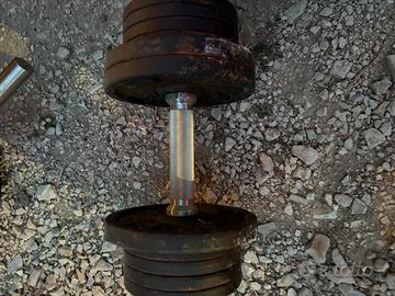 Vendo un bilancere, 2 manubri e 1 manubrio singolo, condizoni accetabili, 38kg totali.