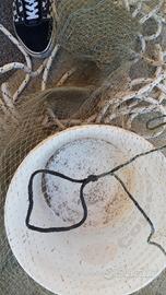 bilancia per pescare con ferri 3x3 metri piombati ,di grosso spessore rete a maglie da 1 cm, corda lunga 20 metri, palo e carrucola
