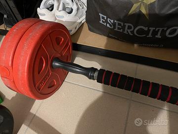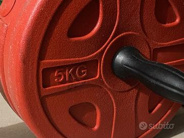 Bilaciere con 4 dischi di 5kg c/u in plastica resistente. tenuta bene. la vendo per necesita di spazio a casa.