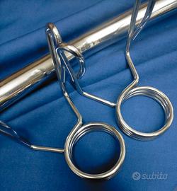 vendo bilanciere EZ usato, lunghezza circa 120 cm. i perni di caricamento sono per i dischi con foro centrale di diametro 50 millimetri, NON SPEDISCO, consegna zona Cesena, per ricerca palestra fitness personal trainer pesi Technogymm Panatta decathlon home Gym manubri panca Sidea manubri.