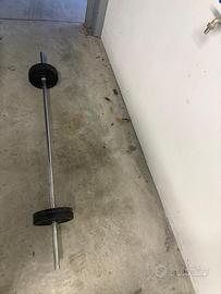 Bilanciere con 4 dischi in ghisa da 5kg l’uno. Ritiro di persona.