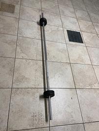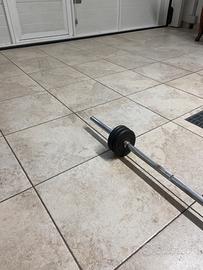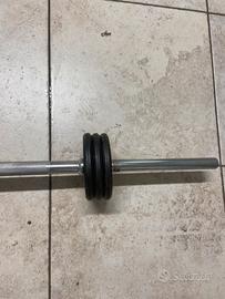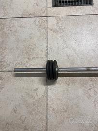 Vendo bilanciere in acciaio con dischi. Ideale per esercizi come stacchi da terra, squat, military press e molto altro. Perfetto per chi vuole allenarsi in casa con attrezzatura robusta e funzionale.