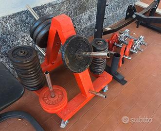 Vendo in blocco non separatamente 2 bilancieri, 4 manubri, pesi (4X10Kg / 12X5Kg / 20X2Kg / 8X1,5Kg / 14X1Kg) Per un totale di 166 Kg di dischi Regalo 2 panche e porta dischi