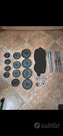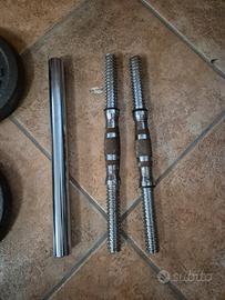Bilanciere componibile, utilizzabile anche come manubri, leggermente arrugginito ma efficiente , il pacchetto contiene: