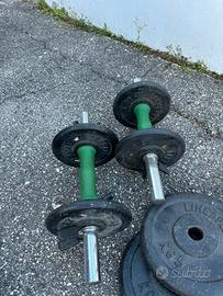 Bilanciere standard con chiusure 60€ Manubri standard con chiusure 40€ Dischi 10kgX4 5kgX4 2kgX4 tot 68kg 140€ 2€ al kg