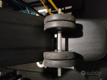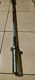 Vendo bilanciere in acciaio lunghezza 120 cm, diametro x dischi da 5 cm, con mollette ferma dischi, vendo inoltre un manubrio componibile con 4 dischi da 2.5 kg ciascuno, tutto in ottime condizioni
