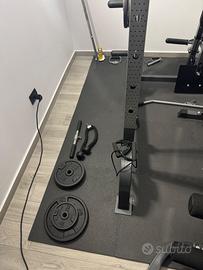 Vendo set completo per home gym composto da bilanciere + pesi, tutto formato olimpico 50 mm, ideale per panca, squat, stacchi e allenamento forza. Vendo solo insieme.