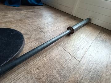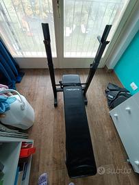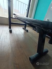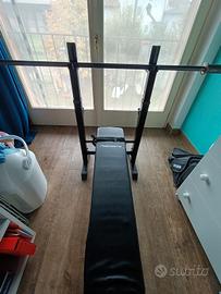 Bilanciere olimpico non zincato + 4 dischi di ghisa : 2 da 10 kg e due da 15 kg. Panca multifunzionale.