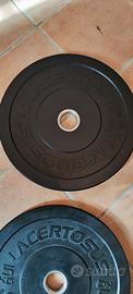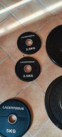 Bilanciere olimpionico Lacertosus, in condizioni eccellenti, usato pochissimo e bumper di vari pesi. 4*10kg, 2*5kg grandi, 2 *5kg piccoli, 2*2,5. Scambio a mano a Roma, no spedizione.