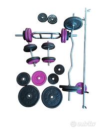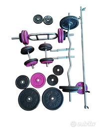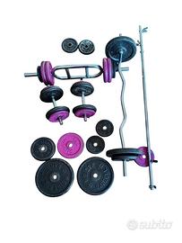 Bilancieri, manubri e pesi (dischi), totale 122 kg