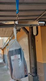 Le foto dovrebbero essere sufficientemente esplicite, ho usato 1 kg di farina per potere capire meglio il funzionamento; il manico è prolungato e all'estremità c'è un contrappeso per bilanciare la pesata (tipo stadera).
