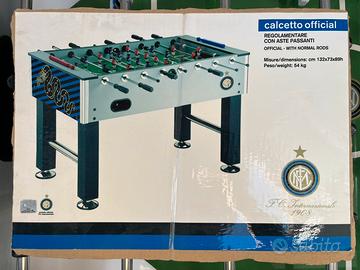 Vendo biliardino come nuovo, usato pochissimo e tenuto sempre in casa. Grafiche ufficiali Inter ad alta risoluzione su tutto il telaio e sul campo di gioco. Struttura robusta e stabile di dimensioni cm 132x73x89h. In aggiunta, vi sono le palline originali da gioco e libretto di istruzioni per il montaggio. Niente spedizioni, solo ritiro a mano a causa dell’ingombro. Disponibile per qualsiasi visione o informazioni al cell. 339 6535443