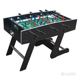 Versione professionale del Calcio Balilla pieghevole, tavolo con appoggio in verticale per ridurre al minimo l'ingombro quando non in uso. Lunghezza137 cm Larghezza72 cm Altezza88 cm Vendo per inutilizzo