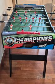 Calcetto balilla adulti con gambe, da interno in MDF, misure 121x61x85cm. Bigliardino da casa con 8 aste passanti. Segnapunti e palline incluse. Uso indoor.