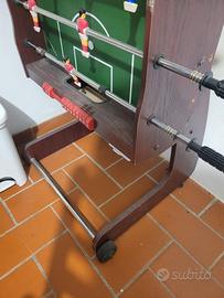 Struttura Pieghevole e Salvaspazio: Progettato per essere riposto verticalmente, riducendo al minimo l'ingombro quando non é in uso, ideale per case con spazio limitato. Tipologia Aste: Aste uscenti - Aste Passanti per Maggiore Controllo di Gioco: Dotato di aste passanti in acciaio cromato, che offrono una maggiore potenza e precisione nei movimenti, garantendo un'esperienza di gioco dinamica. Realizzato Interamente in Legno. Facile da Spostare: Dotato di ruote in gomma per un trasporto semplice e senza sforzo, perfetto per riporlo o spostarlo da una stanza all'altra. Gambe a L per Maggiore Stabilitá: Le gambe a forma di L mantengono il tavolo stabile sia in posizione orizzontale che verticale. vendo solo in zona San casciano dei bagni (Si) e citta della pieve (pg) e dintorni.