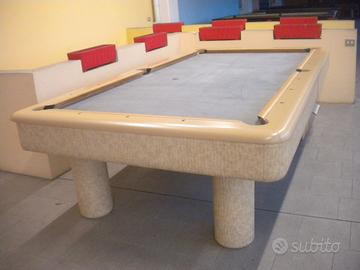 Biliardo a Pool mt. 2,54 x 1,27 campo gioco completo di accessori, panno nuovo al piano di gioco di colore a scelta ( bordeaux, salmone, grigio, blu, verde ) con 4 stecche segnapunti, montaggio raggio di 150 km compreso nel prezzo