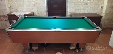 biliardo 142x256 tutto originale in legno massello piedi con altezza regolabile con aggiunta di ruote , compreso nel prezzo tutti gli accessori 8 stecche struttura porta stecche due triangoli con palle per info chiamate 3387602549 non rispondo a messaggi prezzo trattabile