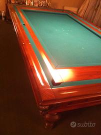 Antico Biliardo epoca XIX secolo lusso, manifattura Italia meridionale, marca Rutigliani. Tavolo in perfette condizioni, 6 buche e cornice per giocare senza buche (sia Pool che carambola italiana).